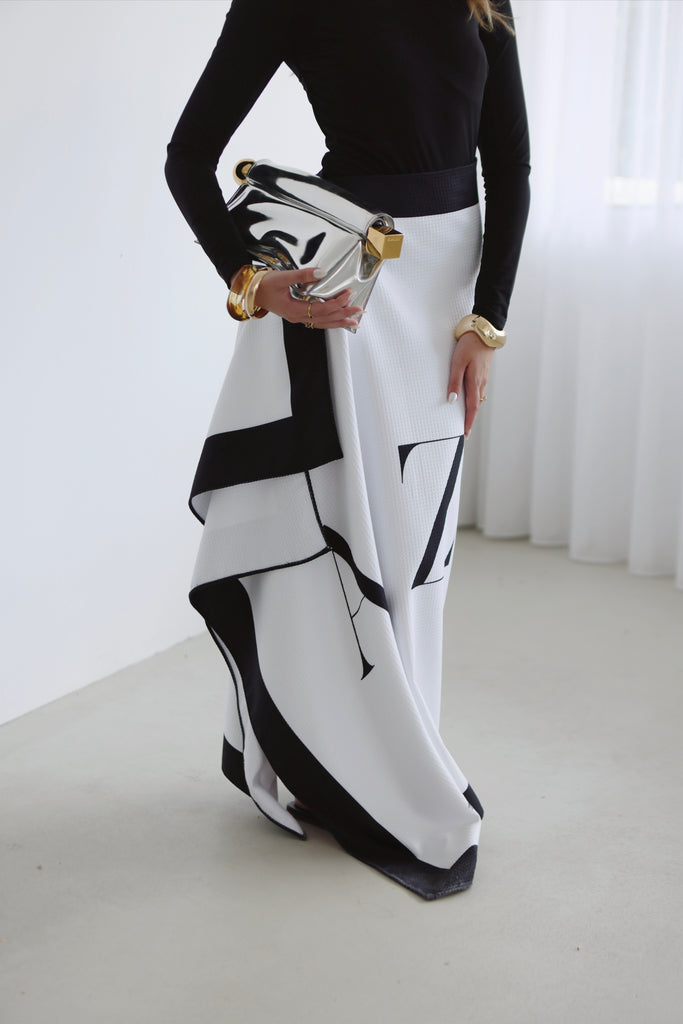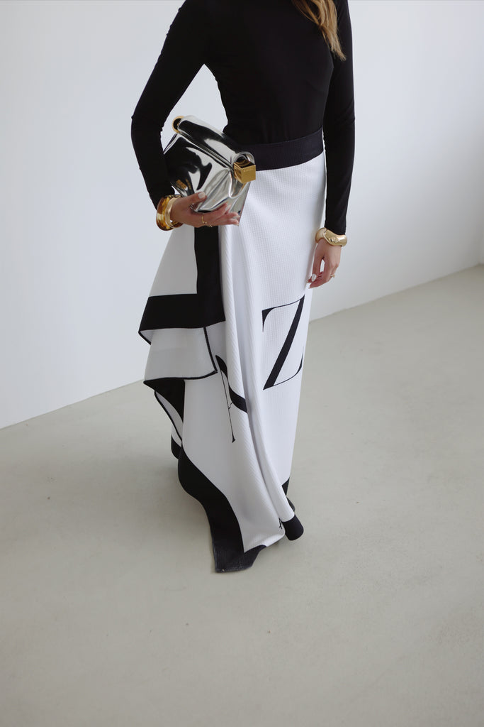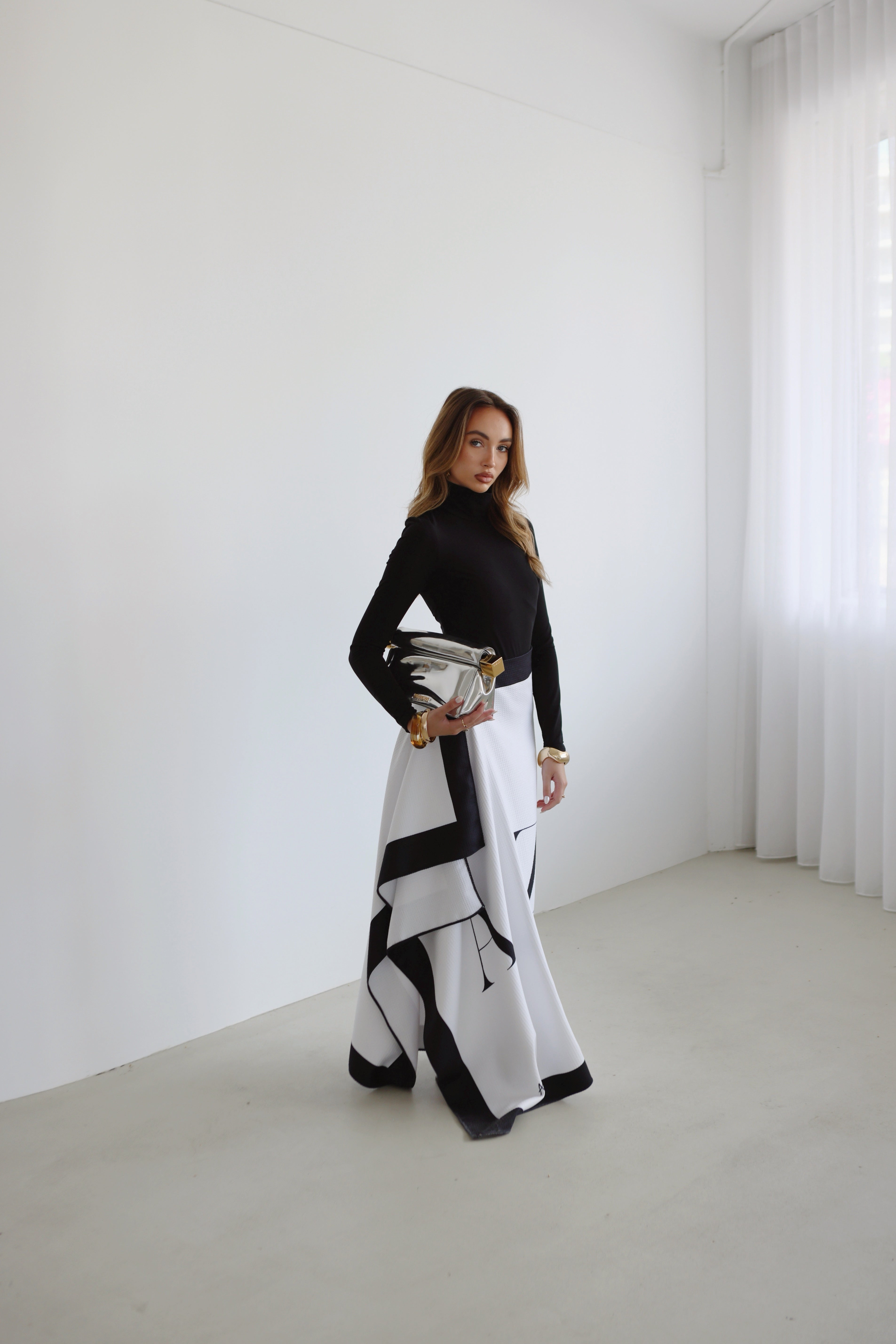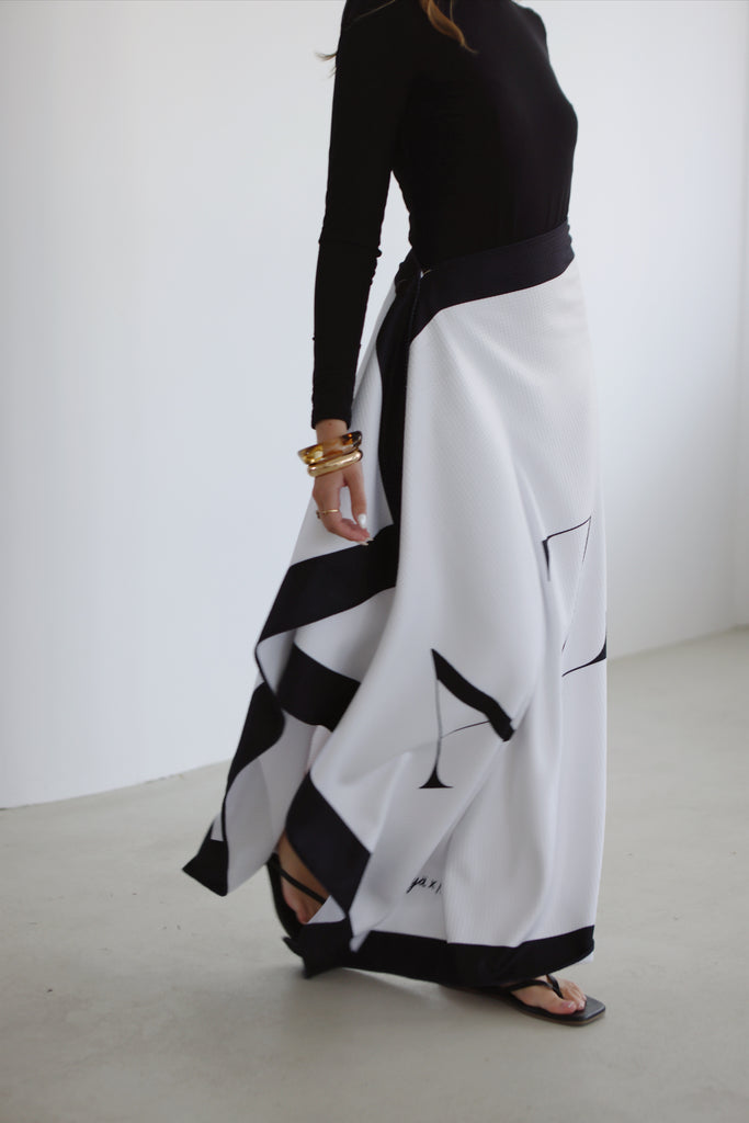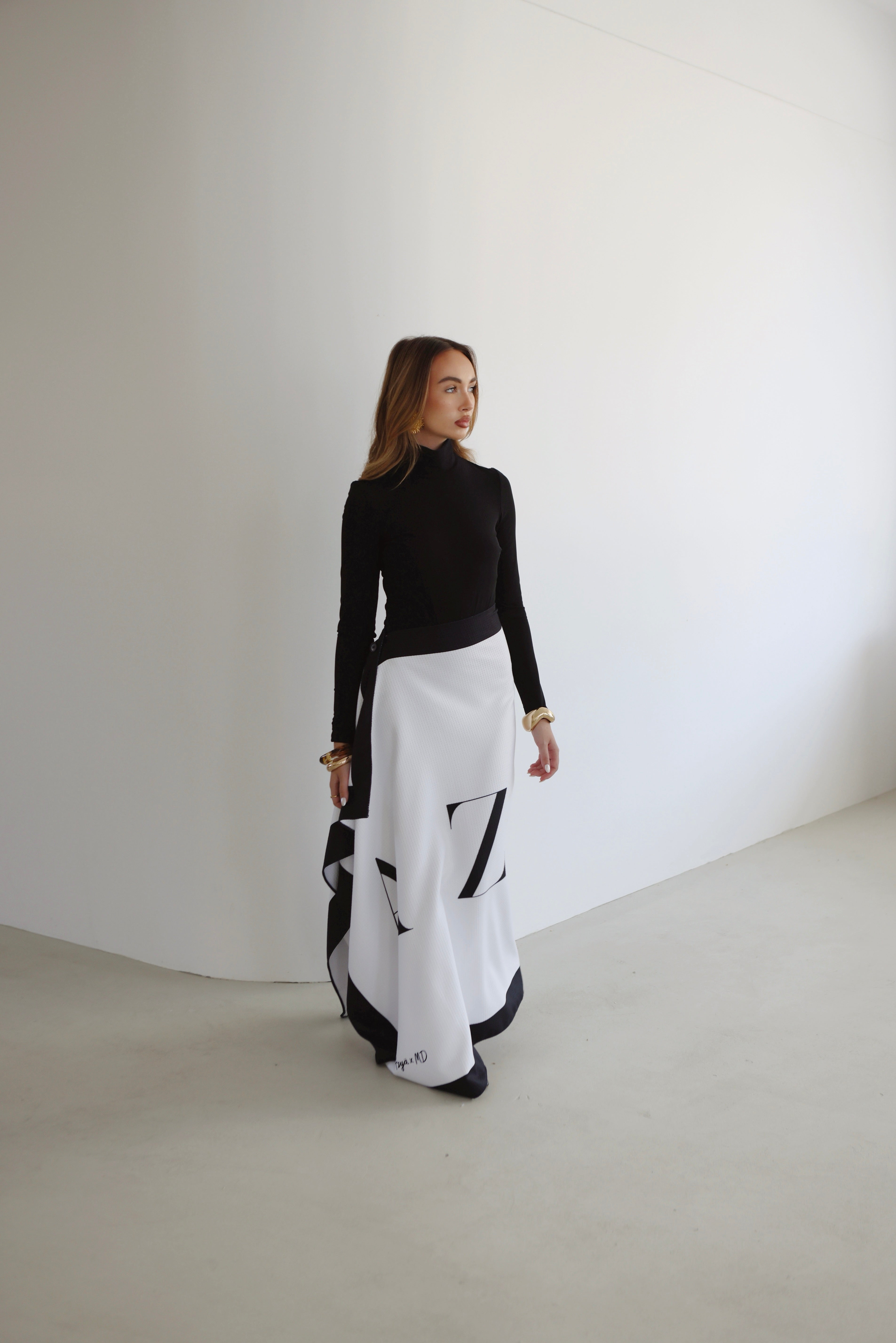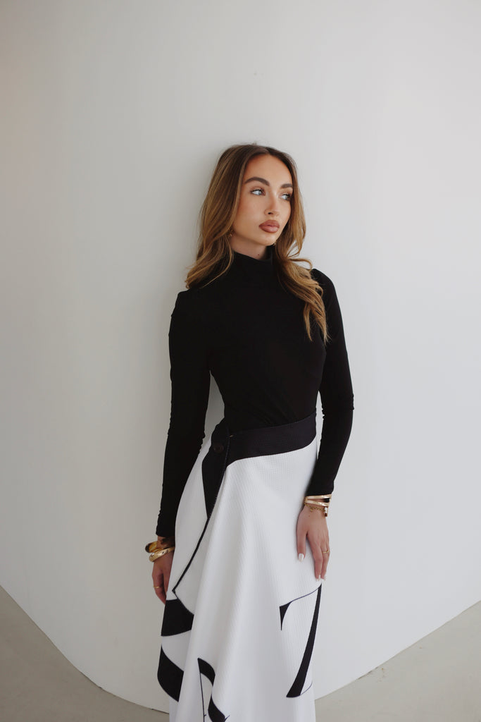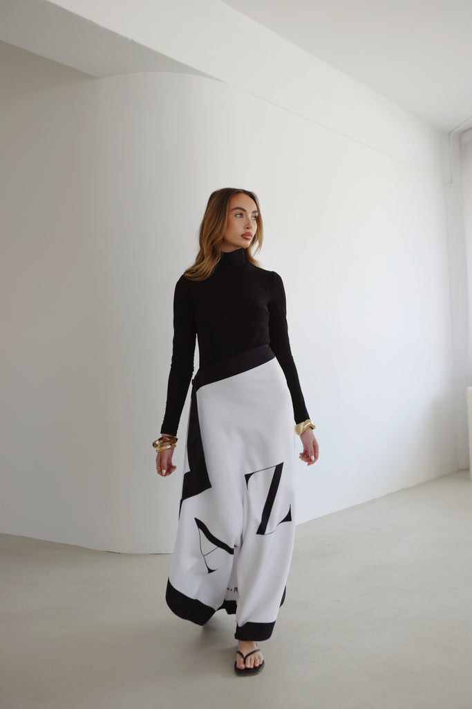 Designed as a one-size-fits-all piece, simply adjust the button along the waist and choose the opening that best suits your body shape.